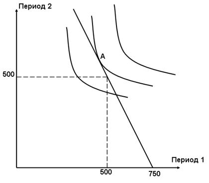 № 21. Индивид получает заработную плату в размере 500 ден. ед. в месяц. На рисунке представлена карта кривых безразличия при межвременном потребительском выборе.