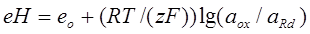 где аox и аRd - активности (концентрации) соответственно ионов, которые ркислились и ионов, которые восстановились;