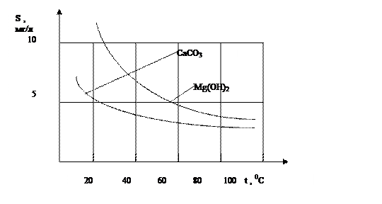 Рис.1.1. Растворимость в воде карбоната кальция и гидрата магния.
