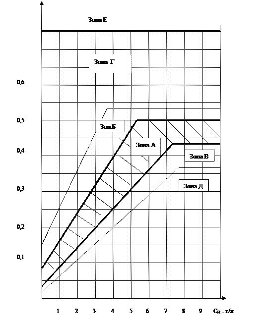 | Σ K+Li+Na, моль/л | Зона А | Зона Б и В | Зона Г и Д | Зона Е |