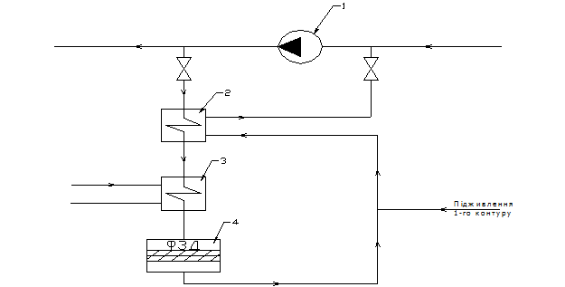 Наиболее распространенным является вариант использования високотемпературного фильтра. В этом случае он включается по схеме рис.6.3, второй вариант (ему отдают преимущество за границей) предусматривает снижение температуры воды первого контура и её обработку на ионитном фильтре смешанного действия (рис.6.4).