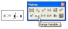 · Нажмите кнопку Range Variable (Ранжированная переменная) на панели Matrix (Матрица), показанную на рис. 4.9, либо введите символ точки с запятой с клавиатуры.