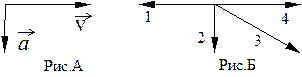 А2. На рис.А показаны направления скорости и ускорения тела в данный момент времени. Какая из стрелок (1-4) на рис.Б соответствует направлению результирущей всех сил, действующих на тело.