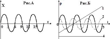 А7. На рис.А представлен график зависимости координаты тела от времени при гармонических колебаниях. Какой из графиков на рис.Б выражает зависимость импульса колеблющегося тела от времени?