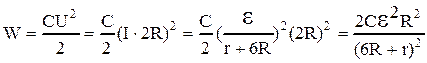 (1 балл) Объединение трех уравнений для расчета энергии, запасенной в конденсаторе и правильные алгебраические преобразования с получением ответа, использующего известные из условия задачи величины: