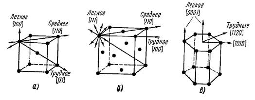 45) Рис. 9.2 Направления легкого, среднего и трудного намагничивания в монокристаллах: