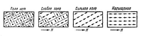 52) Рис. 9.3.Схема ориентации спинов в доменах при намагничивании ферромагнетика