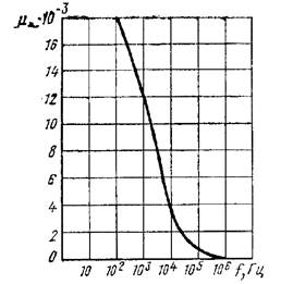 mис 9.6 Зависимость динамической магнитной проницаемости ~ пермаллоя от частоты в слабом поле (Н=0,8 А/м)
