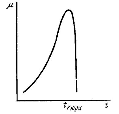 ис. 9.7. Типичная зависимость магнитной проницаемости ферромагнитных материалов от температуры