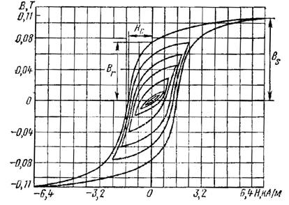 76) Рис. 9.8. Петли гистерезиса при различных предельных значениях напряженности внешнего магнитного поля