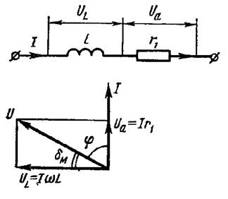 103) Рис. 9.10. Эквивалентная схема и векторная диаграмма индуктивной катушки с магнитным сердечником