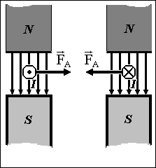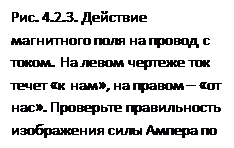 Здесь вектор l направлен по току (в сторону переноса положительного заряда), а его модуль равен длине провода. Направление амперовой силы определяется так же, как направление магнитной силы для положительного заряда (см. рис. 4.2.3).