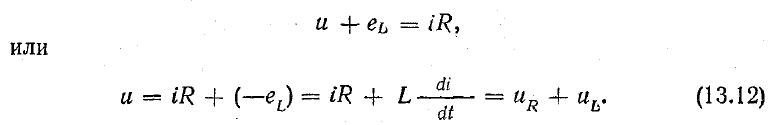 Приложенное к катушке напряжение состоит из двух слагаемых,одно из которых uR равно падению напряжения в активном сопротивлении, а другое u L уравновешивает эдс самоиндукции.