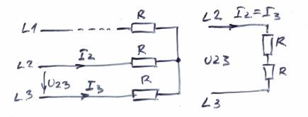 Потребители во второй и третьей фазах будут соединены последовательно и