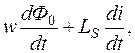где R - активное сопротивление катушки, LS - индуктивность рассеяния. Сама катушка изображена обмоткой, помещенной на сердечнике и имеющей число витков w. Считается, что основной поток замыкается по сердечнику, а поток рассеяния отсутствует.