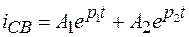 где А1, А2- постоянные интегрирования, определяемые из начальных условий; p1, p2 – корни характеристического уравнения.