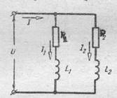 Рассмотрим простейшую цепь переменного тока, состоящую из двух параллельных ветвей с последовательно включенными активными сопротивлениями и катушками индуктивности и подключенную к источнику синусоидального напряжения