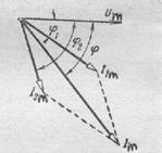 В каждой ветви ток будет отставать от напряжения на ветви (см. § 52), а напряжение на ветвях общее. Поэтому построим векторную диаграмму токов, считая, что мгновенные значения токов в первой и второй ветвях отстают от напряжения соответственно на
