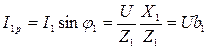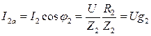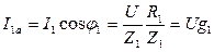2)Активные составляющие совпадают по фазе с напряжением и равны: