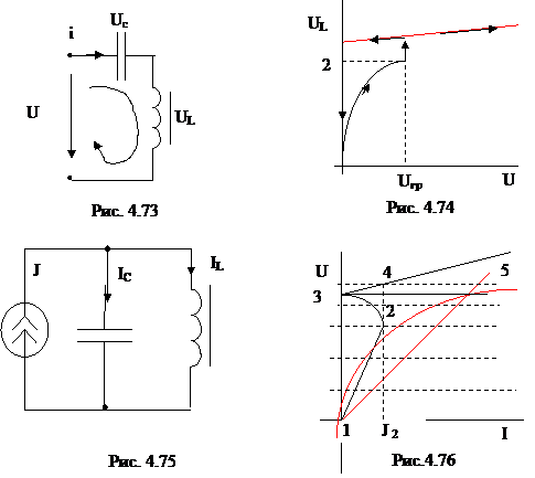 Включим линейную емкость и нелинейную индуктивность параллельно (рис. 4.75) и подключим их к источнику тока. В анализе этой цепи воспользуемся также методом Калантарова.