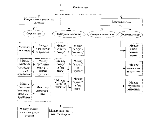 Один из существенных признаков конфликта составляют характер и особенности участвующих в нем сторон. От того, кем представлены конфликтующие стороны, решающим образом зависят характеристики конфликта... Исходя из этого базовая типология конфликтов будет иметь вид, представленный на рисунке.