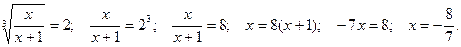 3º. Следует учитывать, что при возведении обеих частей уравнения в четную степень возможно появление посторонних корней. В этом случае обязательна проверка найденных корней путем их подстановки в исходное уравнение.
