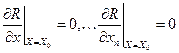 что для всех точек этой окрестности выполняется неравенство R(x)<R(x0)-max, либо R(x)>R(x0)-min, необходимые условия существования экстремума функции многих переменных является равенство 0 частных производных 1-ого порядка по всем элементам: