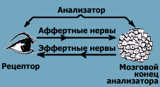 Физиологической основой ощущения является нервный процесс, возникающий при действии раздражителя на адекватный ему анализатор. Анализатор - понятие, предложенное И.П. Павловым, обозначающее совокупность афферентных и эфферентных нервных структур, участвующих в восприятии, переработке и реагировании на раздражители.