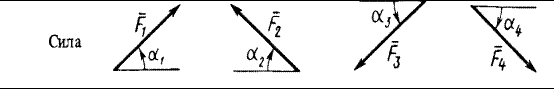 | Номер варианта условий | Точка приложения F1 = 10 Н | | Точка приложения F2 = 20 Н | | Точка приложения F3 = 30 Н | | Точка приложения F4 = 40 Н | |