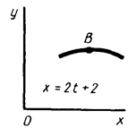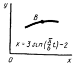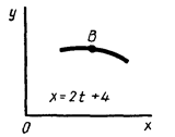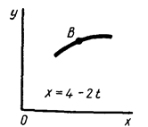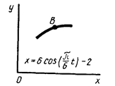 Точка В движется в плоскости ху (траектория точки на рисунках показана условно). Закон движения точки задан уравнениями: х = f1 (t), у = f2(t), (где х и у выражены в сантиметрах, t – в секундах.