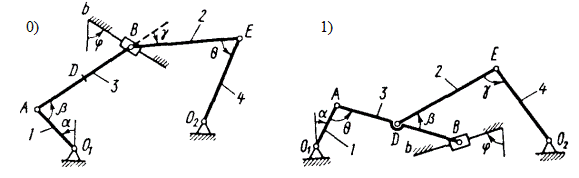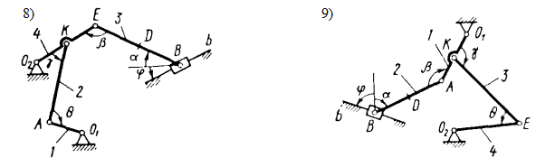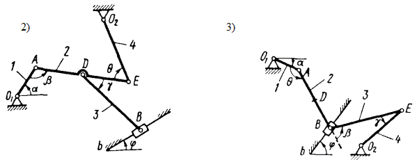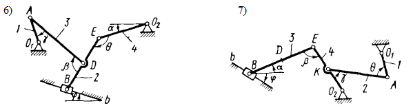 l2 = 1,2 м; l3 = 1,4 м; l4 = 0,8 м. Положение механизма определяется углами α, β, γ, φ, θ, которые вместе с другими величинами заданы в табл. 7.3.