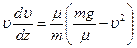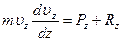 Далее находим: Рz = Р = mg, Rz = -R = - μυ 2; подчеркиваем, чтов уравнении все переменные силы надо обязательно выразить через величины, от которых они зависят. Учтя еще, что υz = υ, получим: