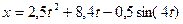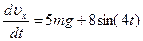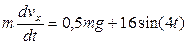 Так как Рх = Р sin 30° = 0,5 mg, Nx = 0, Fx = 16 sin (4 t), то уравнение (8) примет вид: