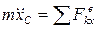 направляющих. Проведем координатные оси ху так, чтобы ось у прошла через начальное положение центра масс плиты. Для определения х, воспользуемся теоремой о движении центра масс С системы и составим дифференциальное уравнение его движения в проекции на ось х, обозначая массу системы через т: