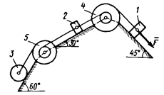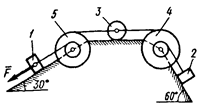Под действием силы F = f (s), зависящей от перемещения точки приложения силы, система приходит в движениеиз состояния покоя. При движении системы на шкивы 4 и 5 действуют постоянные моменты сил сопротивлений, равные соответственно М4 и M5.