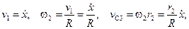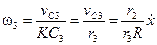 3. Все скорости, входящие в T1, T2 и T3, выразим через обобщенную скорость х, равную, очевидно, v1. Если при этом учесть, что v1 = ω2R2, а vC3 = = ω2r2, и что точка К является для катка 3 мгновенным центром скоростей, то получим: