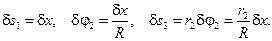 Все входящие сюда перемещения надо выразить через δ x. Учтя, что зависимости между элементарными перемещениями здесь аналогичны зависимостям (5) между соответствующими скоростями, получим: