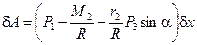 δ А = Р1 δ s1 – М2 δ φ2 – Р3 sin α δ s3. (8)
