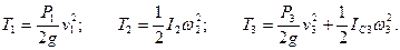 2. Определим кинетическую энергию (Т) системы, равную сумме энергий всех тел: