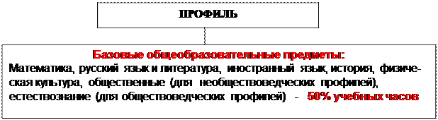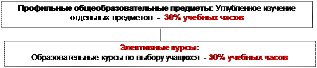 Согласно БУПу распределение часов в профильном классе на базовые профильные предметы и и элективные курсы осуществляется по схеме рис. 12.
