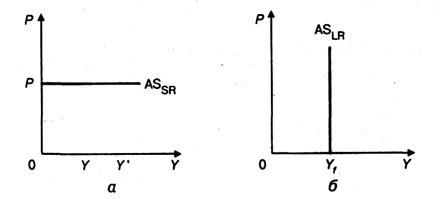 а – в краткосрочном периоде (кейнсианский отрезок);