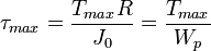 Очевидно, что касательные напряжения достигают наибольшего значения на поверхности вала при