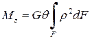 С учетом того, что интеграл в полученной формуле представляет собой полярный момент инерции поперечного сечения, получим иную форму закона Гука при кручении вала: