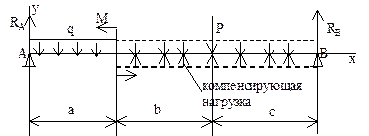 14.1) Метод начальных параметров. Начало координат выбирают в крайней левой точке. При включении в уравнение момента М, который приложен на расстоянии "а" от начала координат, его умножают на множитель (х — а)0, который равен 1. Любую распределенную нагрузку продлевают до конца балки, а для ее компенсации прикладывают нагрузку обратного направления. Для рис.: