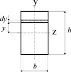 Разобьем площадь прямоугольника на элементарные площадки с размерами b (ширина) и dy (высота). Тогда площадь такого элементарного прямоугольника (заштри- хован) равна dA = b·dy. Подставляя значение dA в первую формулу, получим