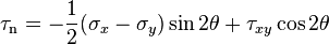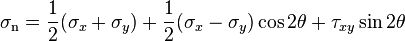 σv = σx ⋅l 2 + σy ⋅m 2 + σz ⋅n 2 + 2 τyz⋅m⋅n + 2 τzx⋅n⋅l + 2 τxy⋅l⋅m.
