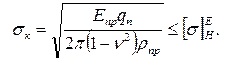 n - коэффициент Пуассона, qn - удельная погонная нормальная нагрузка, [s]HE - допускаемые контактные напряжения с учётом фактических условий работы.