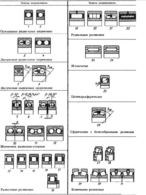 Подшипники качения - это опоры вращающихся или качающихся деталей, в которых элементами качения служат шарики или ролики, установленные между кольцами и удерживаемые на определённом расстоянии друг от друга обоймой, называемой сепаратором. В процессе работы одно из колец подшипника как правило неподвижно. В некоторых типах подшипников одно или оба кольца могут отсутствовать (в них тела качения опираются непосредственно на поверхность вала или корпуса). Ряд подшипников качения выпускается с уплотнениями. В некоторых подшипниках качения может отсутствовать сепаратор. Посадочные поверхности внутреннего и наружного кольца как правило гладкие цилиндрические, но имеются разновидности колец с буртиками, с канавками, с цилиндрическими или сферическими выемками, с отверстиями для подвода смазки, с конической расточкой, с эксцентриситетом посадочной поверхности и поверхности беговой дорожки, с внутренним кольцом на разжимной втулке и т. п. Типы и конструктивные особенности подшипников качения приведены в ГОСТ 3395-89, а также в нормалях подшипниковых заводов.