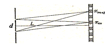 Решение: В результате прохождения монохроматического света через щели Юнга, на экране наблюдается интерференционная картина – чередующиеся светлые и темные полосы. Координата m-го минимума определяется условием: