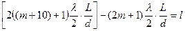По условию задачи на экране на расстоянии l = 10 cм наблюдается N=10 темных полос, следовательно,